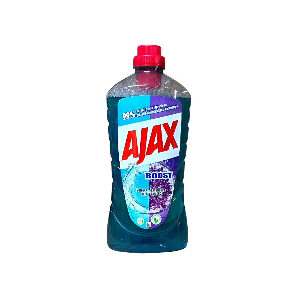 Ajax Boost Vinegar a Levander univerzálny čistiací prostriedok 1L Ajax univerzálny čistič, ktorý vám pomôže s uprataním celého domu. Ajax je určený na čistenie všetkých povrchov. Zanecháva za sebou príjemnú a dlhotrvajúcu sviežu vôňu levandule, žiarivý lesk a dokonalú čistotu na všetkých povrchoch. Obsahuje ocot, ktorá pomáha rozpustiť nepoddajné škvrny vysporiada a sa aj s tou najväčšou špinou. Nezanecháva za sebou šmuhy. Ajax je šetrný k chúlostivým povrchom (mramor, keramika).
