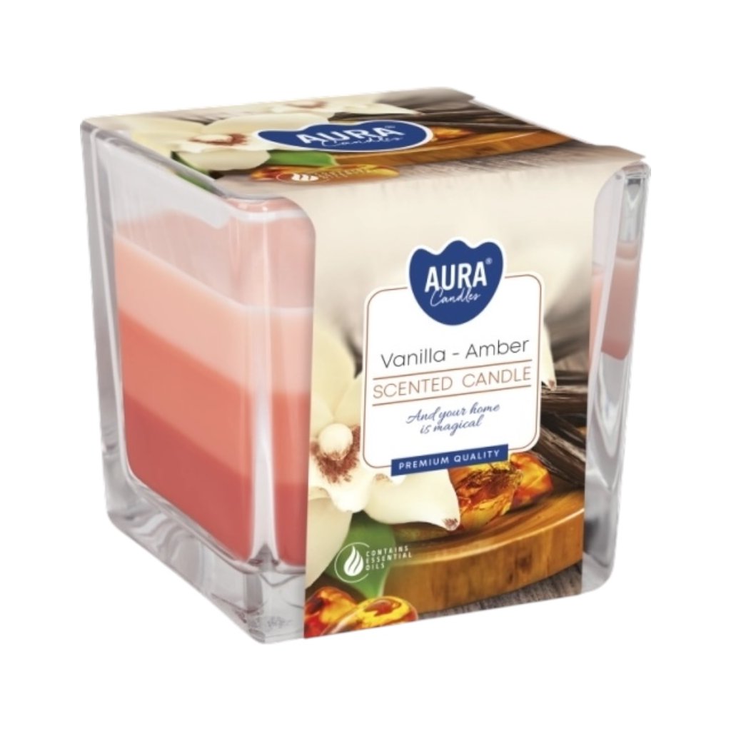 Sviečky AURA Candles v štvorcovom skle s tromi farebnými vrstvami sú ideálnym riešením pre ľudí, ktorí oceňujú funkčnosť a moderný dizajn. Vďaka dvom knôtom je žiara sviečky intenzívnejšia.