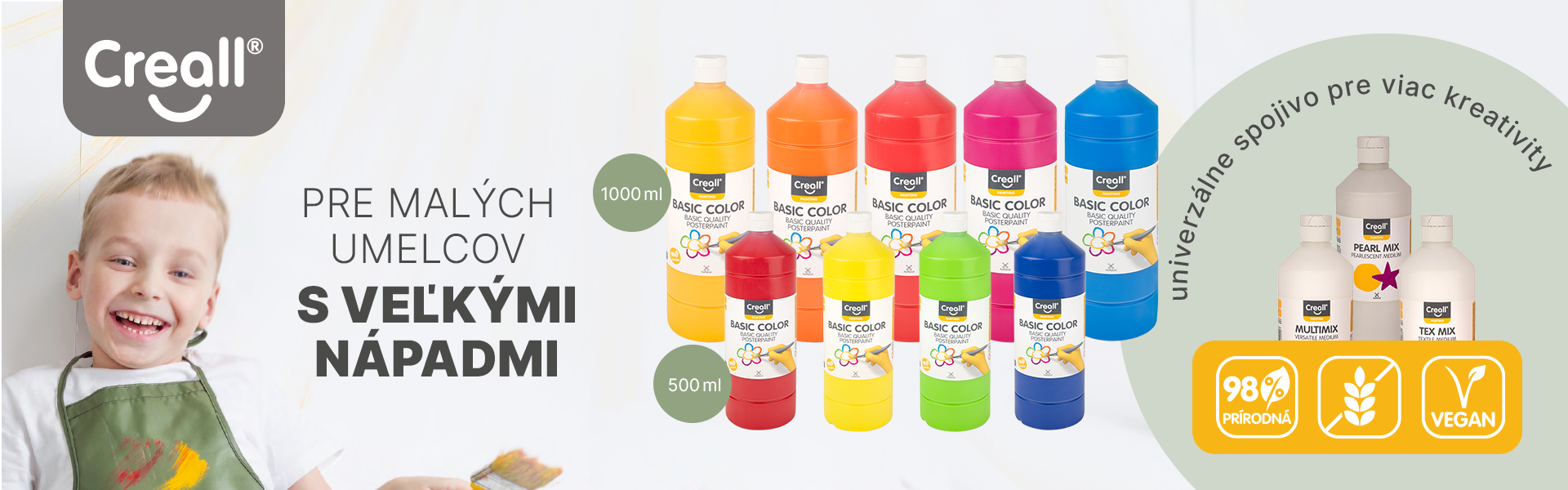 Holandská značka Creall so širokým sortimentom výtvarných potrieb pre školy, umelecké školy, škôlky, záujmové krúžky, ale i pre dekoratérov, ktorí hľadajú kvalitné potreby pre rôzne kreatívne techniky.