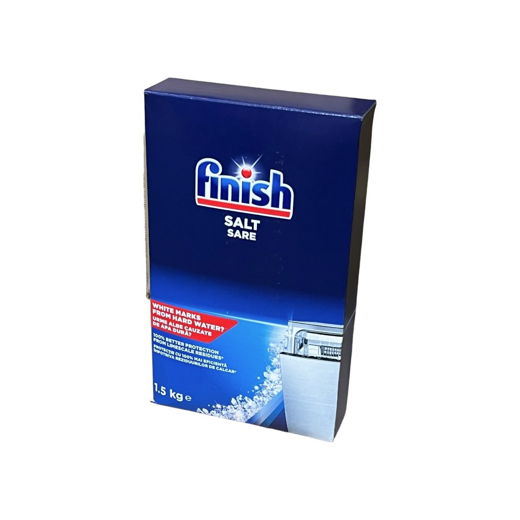 Finish soľ do umývačky. Tvrdá voda spôsobuje usadzovanie vodného kameňa na skrytých častiach umývačky, čo môže rýchlo znížiť jej účinnosť. Soľ Finish zmäkčuje vodu, čím zabraňuje usadzovaniu vodného kameňa a chrání vašu umývačku. Iné soli, ktoré nie sú priamo určené do umývačiek riadu, môžu obsahovať nečistoty, ktoré môžu vašu umývačku poškodiť. Vďaka svojej vysokej čistote poskytuje soľ Finish o 100 % lepšiu ochranu umývačky pred vodným kameňom.