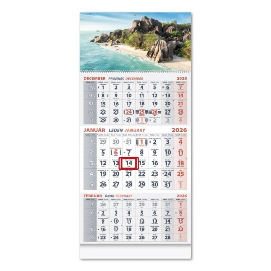 Prehľadný 12-listový trojmesačný nástenný kalendár s jednou špirálou je veľmi populárny a žiadaný.
