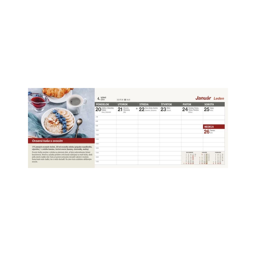 Skvelou inšpiráciou na prípravu chutných, nenáročných jedál je kalendár Kuchárka. Stolový týždňový stĺpcový kalendár s obrázkami a receptami jedál, doplnený o fázy Mesiaca, východy a západy Slnka, so slovenskými a českými menami (plus netradičné mená), význačnými štátnymi sviatkami oboch krajín aj susediacich krajín EÚ.