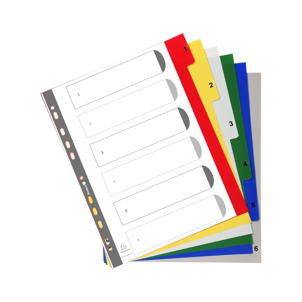 Rozraďovač Exacompta A4 PP číselný 1-6 mix farieb