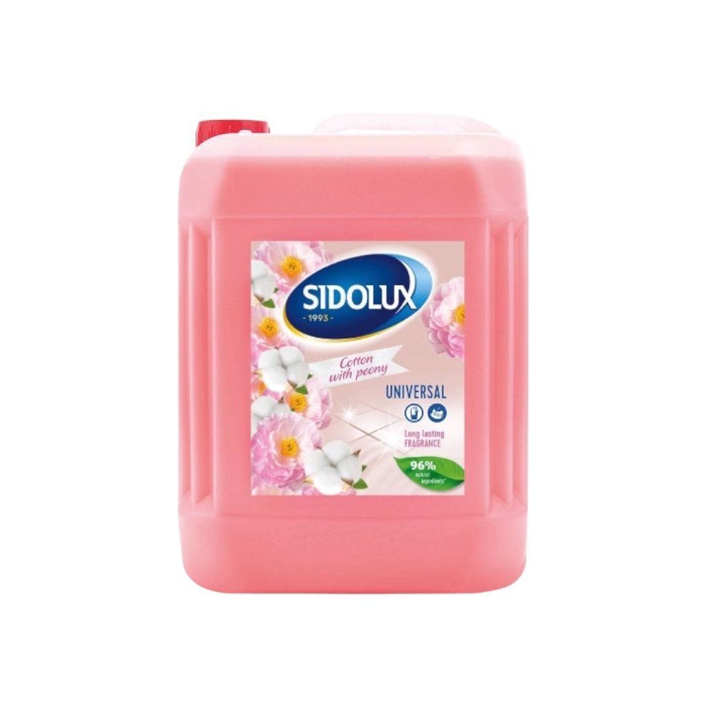 Chcete priniesť domov čistotu, jemnosť, sviežosť a zároveň elegantnosť? Tak potom jednoznačne zvoľte SIDOLUX UNIVERSAL Cotton with peony - neodolateľná jemná vôňa sviežej bavlny a kvetinového nádychu pivonky, ktorá pretrváva v priestore ešte dlho po upratovaní. Prostriedok nielen že nádherne vonia, ale tiež si bez problémov poradí s čistením rôznorodých povrchov! Tento univerzálny čistiaci prostriedok je určený na rýchle a efektívne odstraňovanie bežných nečistôt a mastnoty z umývateľných povrchov doma aj v kancelárii. Vhodný na podlahy, dlažbu, laminát, povrchy v kuchyni a kúpeľni, rovnako ako na ostatné umývateľné plochy, ktoré si prajete umyť a zároveň prevoňať.