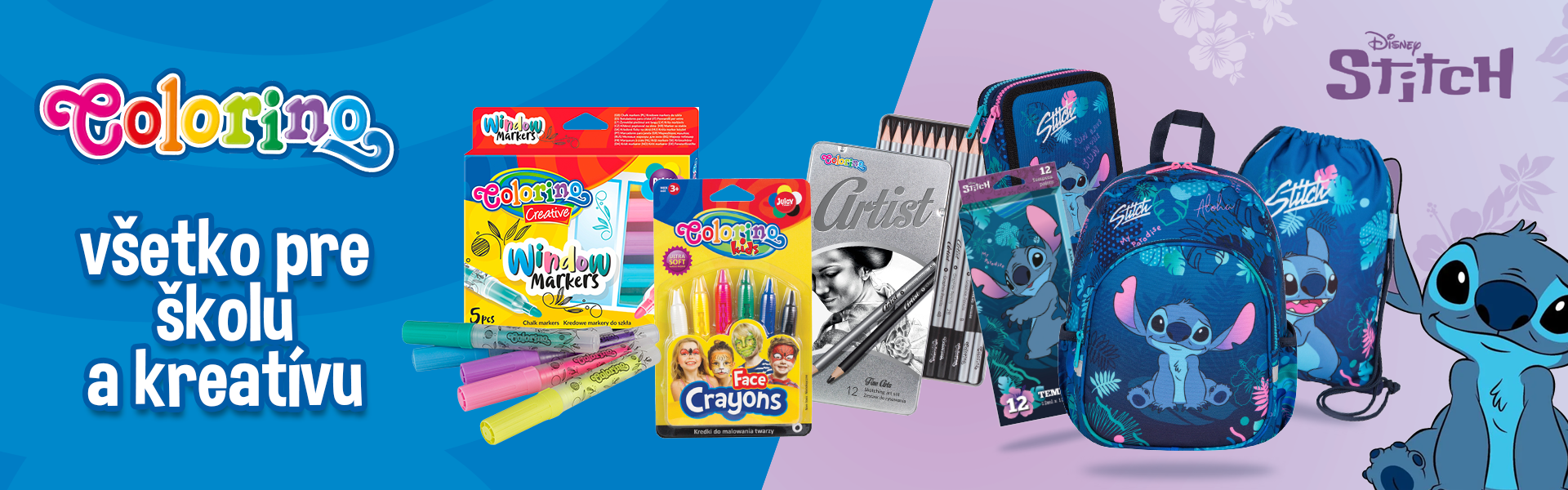 Značka Colorino prezentuje všetok sortiment so zameraním na výtvarné aktivity detí. Ponuka produktov pokrýva nie len školské, ale aj kreatívne potreby a sady.